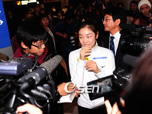 11일부터 고양시 어울림누리 얼음마루에서 개막되는 2008~2009시즌 ISU(국제빙상경기연맹) 그랑프리 파이널 3연패에 도전하는 김연아(18ㆍ군포 수리고)가 캐나다 토론토로 전지훈련을 떠난지 6개월 만에 9일 인천공항을 통해 귀국했다. 김연아가 많은 취재진에 둘러 싸여 공항을 빠져 나가고 있다./인천공항=손용호 기자spjj@osen.co.kr 온라인으로 받아보는 스포츠 신문, 디지털 무가지 OSEN Fun&Fun, 매일 3판 발행
