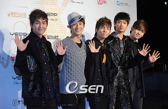 2008 골든디스크 시상식이 10일 저녁 서울 송파구 올림픽공원 올림픽홀에서 열렸다. 골든디스크(Golden Disk Awards)는 대한민국 대중가요와 뮤직 비디오 우수작을 선정하는 시상식으로서 대중문화 창작의욕의 진적과 신인 발굴, 음반 산업 성장에 기여할 목적으로 시작되었다. 1986년에 제1회 시상식이 열렸으며 대한민국에서 가장 권위있는 음악 시상식으로 인정받고 있다. 샤이니가 포토타임을 갖고 있다./윤민호 기자ymh@osen.co.kr 온라인으로 받아보는 스포츠 신문, 디지털 무가지 OSEN Fun&Fun, 매일 3판 발행
