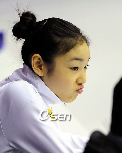 12일 고양시 어울림누리 얼음마루에서 개막되는 2008~2009시즌 ISU(국제빙상경기연맹) 그랑프리 파이널 3연패에 도전하는 김연아(18ㆍ군포 수리고)가 경기 이틀을 앞둔 10일 적응 훈련을 가졌다. 김연아가 연습 차례를 기다리며 귀여운 표정을 짓고 있다./고양=손용호 기자spjj@osen.co.kr 온라인으로 받아보는 스포츠 신문, 디지털 무가지 OSEN Fun&Fun, 매일 3판 발행
