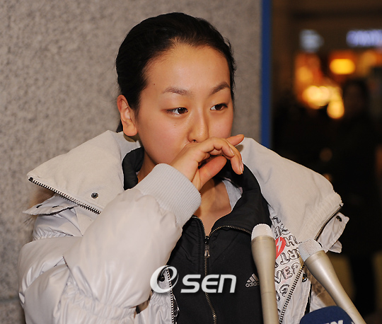 아사다 마오(18, 일본)가 11일부터 고양시 어울림누리 얼음마루에서 개막되는 2008~2009시즌 ISU(국제빙상경기연맹) 그랑프리 파이널에 참석하기 위해 10일 저녁 인천공항을 통해 입국했다. 아사다 마오가 공항 입국장을 나온 후 간단한 인터뷰 중 코를 만지고 있다./인천공항=민경훈 기자 rumi@osen.co.kr 온라인으로 받아보는 스포츠 신문, 디지털 무가지 OSEN Fun&Fun, 매일 3판 발행