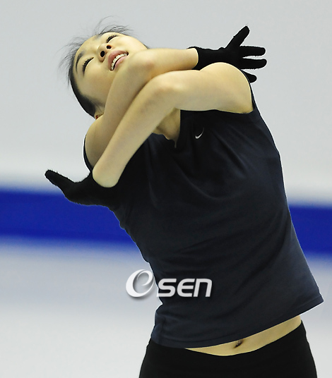 12일 고양시 어울림누리 얼음마루에서 개막되는 2008~2009시즌 ISU(국제빙상경기연맹) 그랑프리 파이널 3연패에 도전하는 김연아(18ㆍ군포 수리고)가 경기 이틀을 앞둔 10일 적응 훈련을 가졌다. 김연아가 실전을 방쿨게 하는 연습을 하고 있다./고양=손용호 기자spjj@osen.co.kr 온라인으로 받아보는 스포츠 신문, 디지털 무가지 OSEN Fun&Fun, 매일 3판 발행