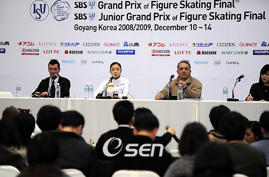 오는 12일 고양시 어울림누리 얼음마루에서 개막되는 2008~2009시즌 ISU(국제빙상경기연맹) 그랑프리 파이널 3연패에 도전하는 김연아(18.군포 수리고)가 경기를 앞두고 11일 적응 훈련을 가졌다. 훈련을 마친 후 김연아가 기자회견을 갖고 있다./고양=김영민 기자ajyoung@osen,co,kr 온라인으로 받아보는 스포츠 신문, 디지털 무가지 OSEN Fun&Fun, 매일 3판 발행