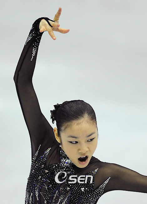 2008~2009시즌 ISU(국제빙상경기연맹) 그랑프리 파이널 경기가 12일 고양시 어울림누리 얼음마루에서 개막돼 김연아(18ㆍ군포 수리고)가 그랑프리 파이널 3연패에 도전한다. 여자 싱글 쇼트 프로그램에서 1위를 차지한 김연아가 아름다운 연기를 펼치고 있다./고양=손용호 기자spjj@osen.co.kr 온라인으로 받아보는 스포츠 신문, 디지털 무가지 OSEN Fun&Fun, 매일 3판 발행