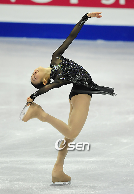2008~2009시즌 ISU(국제빙상경기연맹) 그랑프리 파이널 경기가 12일 고양시 어울림누리 얼음마루에서 개막돼 김연아(18ㆍ군포 수리고)가 그랑프리 파이널 3연패에 도전한다. 여자 싱글 쇼트 프로그램에서 1위를 차지한 김연아가 아름다운 연기를 펼치고 있다./고양=손용호 기자spjj@osen.co.kr 온라인으로 받아보는 스포츠 신문, 디지털 무가지 OSEN Fun&Fun, 매일 3판 발행