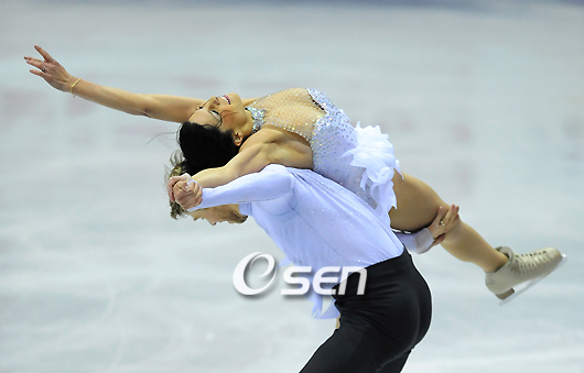 13일 고양시 어울림누리 얼음마루에서 벌어진 2008~2009시즌 ISU(국제빙상경기연맹) 그랑프리 파이널 경기 여자 싱글 프리스케이팅에서 김연아(18ㆍ군포 수리고)가 그랑프리 파이널 3연패에 도전한다. 김연아는 12일 벌어진 쇼트프로그램에서 1위를 차지했다. 아이스댄스 프리 댄스에서 1위를 차지한 프랑스의 델로벨-쇤펠더 조가 아름다운 연기를 펼치고 있다./고양=손용호 기자spjj@osen.co.kr 온라인으로 받아보는 스포츠 신문, 디지털 무가지 OSEN Fun&Fun, 매일 3판 발행