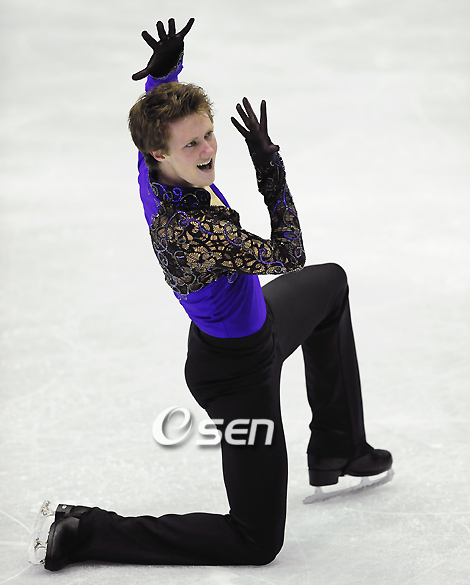 13일 고양시 어울림누리 얼음마루에서 벌어진 2008~2009시즌 ISU(국제빙상경기연맹) 그랑프리 파이널 경기 여자 싱글 프리스케이팅에서 김연아(18ㆍ군포 수리고)가 그랑프리 파이널 3연패에 도전한다. 김연아는 12일 벌어진 쇼트프로그램에서 1위를 차지했다. 남자 싱글 1위를 차지한 미국의 제레미 애보트가 멋있는 연기를 펼치고 있다./고양=손용호 기자spjj@osen.co.kr 온라인으로 받아보는 스포츠 신문, 디지털 무가지 OSEN Fun&Fun, 매일 3판 발행