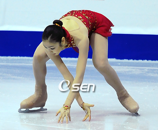 13일 고양시 어울림누리 얼음마루에서 벌어진 2008~2009시즌 ISU(국제빙상경기연맹) 그랑프리 파이널서 김연아가 3연패에 실패했다. 쇼트프로그램서 1위에 올랐던 김연아는 프리스케이팅서 2위에 머무르면서 아사다 마오에 정상을 내줬다. 김연아가 점프를 하다 넘어졌다 일어서고 있다/고양=손용호 기자spjj@osen.co.kr 온라인으로 받아보는 스포츠 신문, 디지털 무가지 OSEN Fun&Fun, 매일 3판 발행