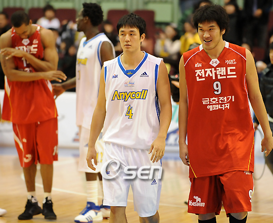 '2008-2009 동부 프로미 프로농구' 서울 삼성과 인천 전자랜드의 경기가 14일 잠실 실내체육관에서 벌어졌다. 이 날 경기에서 삼성은 전자랜드에 87-79로 승리했다. 경기를 마치고 삼성 김동욱이 고려대 1년 후배인 전자랜드 주태수가 얘기를 나누고 있다./잠실체=민경훈 기자 rumi@osen.co.kr 온라인으로 받아보는 스포츠 신문, 디지털 무가지 OSEN Fun&Fun, 매일 3판 발행