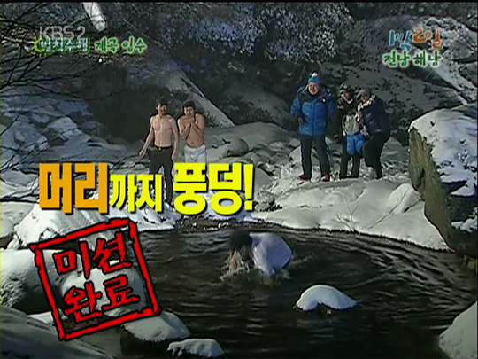 ‘1박 2일’이 추운 겨울과 폭설로 극한 상황에 처하자 시청률이 춤을 추며 오르기 시작했다. 14일 방송된 KBS 2TV ‘해피선데이’는 17.6%의 전국 시청률을 기록했다. 최근 10% 초반까지 시청률 하락하며 주춤하는가 싶더니 추운 겨울이 되면서 다시 시청률 상승세를 보이기 시작했다. 거기다 연말 특집 ‘불후의 명곡’ 또한 시청률 상승에 한 몫 하면서 전반적으로 시청률이 상승했다. 일요일 저녁 예능 시청률 1위는 SBS ‘패밀리가 떴다’가 22.5%로 이름을 올렸지만 실질적인 1위는 ‘1박 2일’인 셈이다. 이날 ‘1박 2일’ 실시간 시청률(AGB, 서울기준) 평균 28~29%를 기록했다. 실시간 최고 시청률은 31.72%를 기록해 아직 건재함을 과시했다. 이날 방송에서는 땅끝마을 해남을 찾은 멤버들의 모습이 방송됐다. 수십년만의 폭설로 겨우 겨우 해남에 도착한 멤버들은 강호동 이승기 은지원과 이수근, 김C, MC 몽이 한 팀이 400년 전통의 한옥 여관 유선관으로 향했다. 강호동 이승기 은지원은 오픈카를 타고 목적지로 향하는 바람에 이승기는 칼바람 속에 고통을 삼켰다. 먼저 도착한 팀은 2시간의 휴식이 주어지고 진팀에게는 냉수마찰의 벌칙이 주어졌다. 강호동팀이 주차장까지 먼저 도착했지만 도중에 차를 얻어타고 온 김C팀이 유선관에 먼저 도착해 한창 동안 실랑이가 벌어지기도 했다. 결국 다수결의 원칙으로 김C팀이 설원 속 계속에서 냉수 마찰했다. 이날 시청자들은 “박장대소 했다” “이번 편을 계기로 다시 일어날 것 같은 예감” “온 가족이 보면서 한참을 웃었다” “오랜만에 긴장감 넘치는 복불복으로 보면서 손에 땀을 쥐었다”는 의견을 남겼다. 이로써 궂은 날씨일수록 ‘1박 2일’ 촬영에는 도움이 된다던 제작진의 판단이 틀리지 않았음을 증명했다. miru@osen.co.kr 온라인으로 받아보는 스포츠 신문, 디지털 무가지 OSEN Fun&Fun, 매일 3판 발행