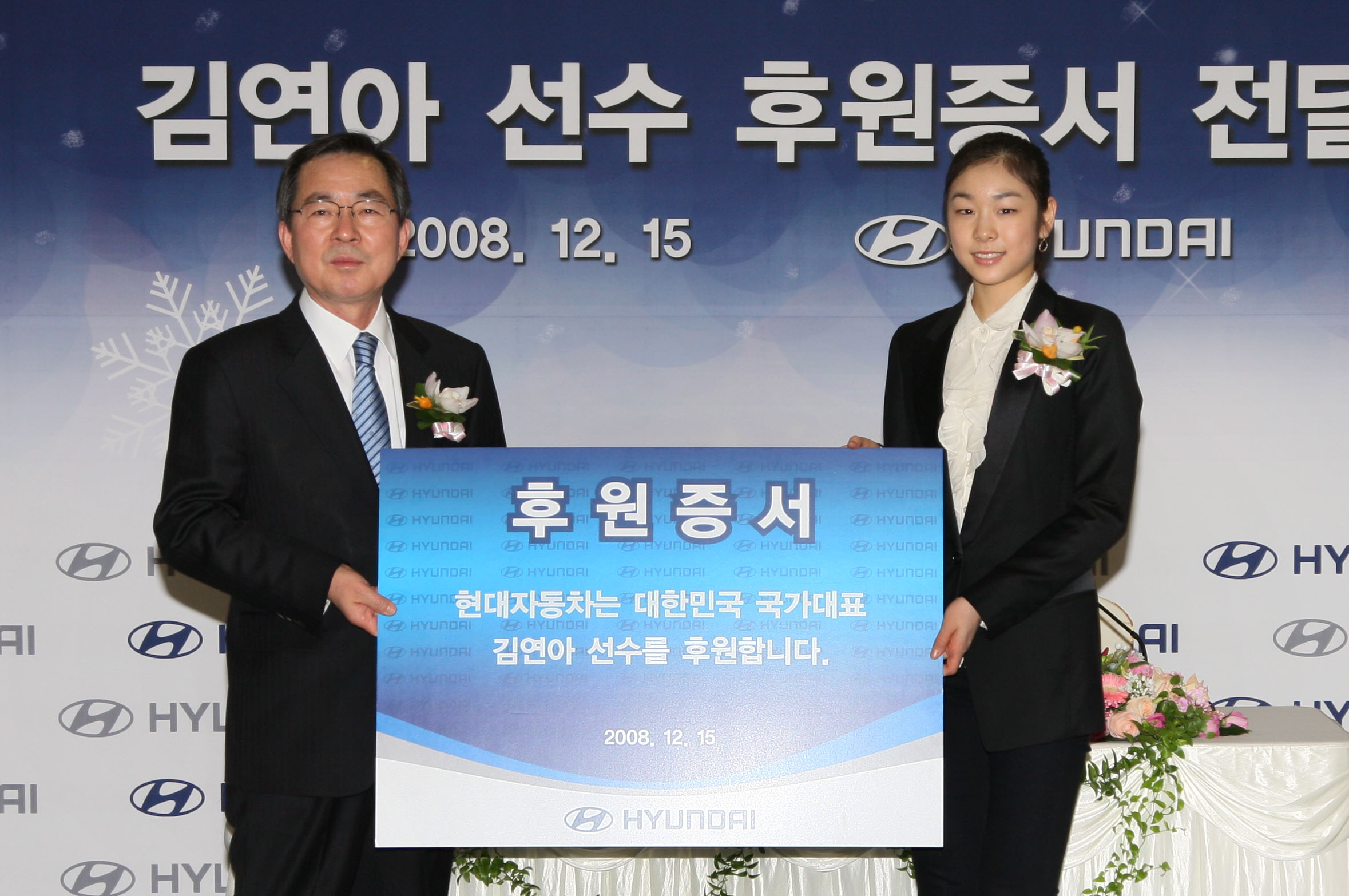 '피겨여왕' 김연아(18, 군포수리고)가 현대자동차와 2년간 공식 후원 계약을 체결했다. 현대차는 15일 우리나라 동계스포츠에 대한 국민의 관심을 높이고 이를 통한 저변 확대와 스포츠 발전을 도모하기 위해 김연아 선수를 후원한다고 밝혔다. 현대차는 이날 서울 서초구 양재동 본사에서 김연아에 대한 공식 후원증서 전달식을 열었다. 공식 후원기간은 2010년 12월까지 2년 동안이며 이 기간 동안 김연아 선수는 내년 세계선수권대회를 비롯한 그랑프리 대회, 2010년 밴쿠버 동계올림픽 등에 참가하게 된다. 현대차는 김연아가 안정된 기반 위에서 내년도 세계선수권대회와 2010년 밴쿠버 동계올림픽을 준비하는 데 도움을 주기 위해 후원을 결정했다고 밝혔다. 최재국 현대차 부회장은 인사말에서 "국민들에게 큰 희망을 주고 있는 김연아 선수의 보다 큰 발전을 위해, 국민들의 성원과 사랑으로 성장한 현대차가 적극적으로 후원하는 것은 당연한 의무이자 큰 기쁨"이라 말했다. 김연아는 "세계적인 자동차회사인 현대차의 후원을 자랑스럽게 생각하며 항상 노력하는 선수가 돼 현대차처럼 세계를 누비는 최고의 스케이팅 선수가 되겠다" 답했다. 김연아는 현대차 측에 자신이 직접 사인을 한 흰색 스케이트화를 선물했다. 현대차는 앞으로 김연아 선수가 출전하는 피겨 스케이팅 대회의 스폰서 등에 참여하고 응원이벤트 및 응원단 운영 등을 통해 적극적인 지원을 펼칠 계획이다. 한편 현대차는 그랑프리 파이널 대회 기간 동안 김연아가 국내에 머무는 동안 일정 소화에 무리가 없도록 제네시스를 제공했다. 7rhdwn@osen.co.kr 최재국 부회장-김연아 / 현대자동차 제공. 온라인으로 받아보는 스포츠 신문, 디지털 무가지 OSEN Fun&Fun, 매일 3판 발행