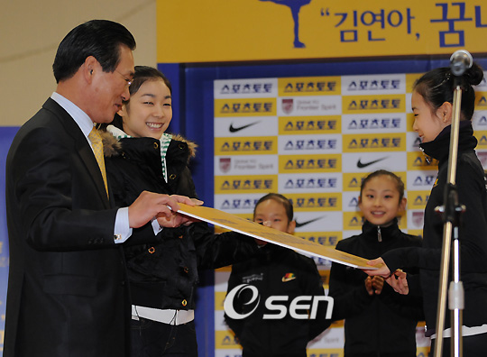 '피겨퀸' 김연아(18, 군포수리고)가 스포츠토토와 함께 한국 피겨 스케이팅 꿈나무 육성에 나선다. 스포츠토토는 16일 오전 11시부터 서울 고려대학교 아이스링크에서 김연아와 브라이언 오서 코치를 초청한 가운데 '스포츠토토 피겨 꿈나무 일일 클리닉' 행사를 개최했다. 김연아는 윤예지(14, 과천중), 박소연(11, 나주초) 등 피겨 유망주 10명에게 피겨 스케이팅의 기본기를 1부 에지 클래스, 2부 테크니컬 클래스로 나눠 가르쳐주며 즐거운 시간을 보냈다. 이번 행사는 스포츠토토가 김연아의 뒤를 이어 한국 피겨 스케이팅을 이끌어 갈 유망주를 발굴하고 육성하기 위해 추진한 공인 캠페인 '제2의 김연아 꿈나무 프로젝트'의 마지막 순서로 기획됐다. 클리닉에 앞서 스포츠토토 오일호 대표이사와 김연아는 그동안 적립한 행복기부금 5000만 원을 유망주 10명에게 전달했다. 유망주 대표로는 김연아와 같이 올 여름 캐나다 토론토에서 전지훈련을 소화한 윤예지가 장학금을 전달받았다. 유망주 1인당 500만 원의 장학금이 돌아간다. 스포츠토토 마케팅부 김시만 팀장은 "김연아의 뒤를 이어 한국 피겨 스케이팅의 미래를 이끌어갈 어린 선수들에게 꿈과 용기를 심어주기 위해 이번 행사를 마련했다"고 밝혔다. 7rhdwn@osen.co.kr 김연아와 오일호 스포츠토토 대표이사가 꿈나무 대표 윤예지에게 장학금을 전달하고 있다./김영민 기자ajyoung@osen.co.kr 온라인으로 받아보는 스포츠 신문, 디지털 무가지 OSEN Fun&Fun, 매일 3판 발행