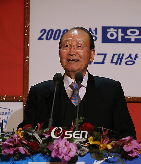 곽정환 한국프로축구연맹 회장이 3선에 성공했다. 프로축구연맹은 16일 오후 종로구 신문로 축구회관 5층에서 대의원총회를 열어 곽정환 현 프로축구연맹 회장(72)의 2년 연임을 확정지어 제8대 회장으로 선출했다. 지난 2005년 유상부 전 회장의 후임으로 선출되고 나서 지난해 재선에 성공했던 곽정환 회장은 2010년까지 연맹 최고 책임자를 맡게 됐다. 곽 회장은 현재 세계문화체육대전(WCSF) 조직위원회 위원장, 성남 일화(전신 천마 일화) 구단주, 미국 워싱턴 타임스 회장, 미국 UPI통신 회장 겸 최고경영자 등 다양한 분야에서 활동하고 있다. 이날 회의에 참석한 곽정환 회장을 비롯해 각 구단 대표들은 함께 열린 제4차 이사회에서 아시아쿼터제에 대한 논의를 했으며, 강원FC의 회원 가입과 연맹의 법인 전환 안건도 처리했다. 강원FC는 연맹 가입금 10억원과 축구발전기금 30억원 중 10억원 등 총 20억원을 연말까지 프로연맹에 내고 신인 드래프트에서 지명한 23명 외에 경험 있는 K-리그 선수들을 보충해 내년 3월부터 K-리그에 참가한다. 또 지금까지 추진해왔던 연맹의 사단법인 전환도 총회의 승인을 받았다. 10bird@osen.co.kr 온라인으로 받아보는 스포츠 신문, 디지털 무가지 OSEN Fun&Fun, 매일 3판 발행