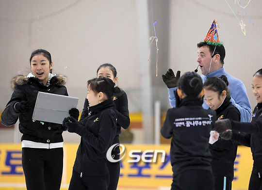 제2의 김연아 꿈나무 프로젝트 캠페인 전달식 및 피겨 클리닉 행사가 16일 고려대 아이스링크에서 열렸다. 김연아가 클리닉을 마친 뒤 오는 18일 만 47세 생일을 맞는 브라이언 오서 코치에게 생일 케이크를 전달하면서 꿈나무들이 폭죽을 터뜨리자 오서 코치가 깜짝 놀라고 있다./김영민 기자ajyoung@osen.co.kr 온라인으로 받아보는 스포츠 신문, 디지털 무가지 OSEN Fun&Fun, 매일 3판 발행