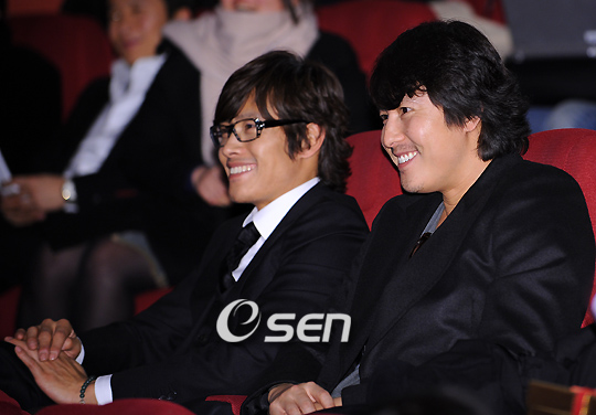 올해 각종 영화상의 대미를 장식할 마지막 영화상인 제11회 '디렉터스 컷 어워드(Director’s CUT Awards)'시상식이 16일 오후 서울 강남구 압구정 CGV에서 열렸다. 1998년 이현승 감독의 제안으로 시작돼 11회를 맞는 디렉터스 컷 시상식은 현재 활발히 활동하고 있는 영화감독들의 투표를 통해 수상자와 수상작이 결정된다. 올해는 100편의 작품을 대상으로 200여명 영화감독들의 투표로 이루어졌다. 이병헌과 정우성이 수상소감을 들으며 환하게 미소짓고 있다./민경훈 기자 rumi@osen.co.kr 온라인으로 받아보는 스포츠 신문, 디지털 무가지 OSEN Fun&Fun, 매일 3판 발행