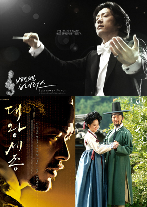 드라마 제작 환경의 악화로 제작 편수가 크게 줄었다. 하지만 이와 상관없이 드라마 콘텐츠의 ‘질’은 계속 발전하고 있다. 드라마 관계자들은 “시청자들의 눈 높이가 높아지면서 기대에 충족시키기 위해 드라마도 발전하고 있다”고 입을 모았다. 2008년 한해, 제작 환경은 힘들었지만 다양한 소재를 다룬 참신한 드라마의 등장으로 2009년도 기대감 가득하다. 대표적인 작품이 KBS ‘대왕세종’, MBC ‘베토벤 바이러스’, SBS ‘바람의 화원’이다. KBS ‘대왕세종’, 인물 사극의 새 지평을 제시 ‘대왕세종’은 KBS 사극으로는 기대에 못 미치는 시청률을 기록했다. 1월 4일 첫 방송을 시작해 봄 개편을 맞아 KBS 2TV 주말 오후 9시대로 편성 이동 등 외부적으로도 혼란스러웠던 탓에 10% 초반의 아쉬운 시청률로 막을 내렸다. 하지만 인물 사극의 새로운 가능성을 제시했다는 점에서는 참신하고 새로운 기획으로 꼽힌다. 본격적인 정치 사극을 표방하며 우리 시대 이상적인 지도자 상을 제시했던 ‘대왕세종’은 ‘성공’한 사극의 필수요소로 여겨졌던 스펙터클한 전투신이나 적군과 아군의 치열한 복수극이 없었다. 섬세한 심리묘사와 곱씹어 볼 가치가 있는 대사로 인물 사극의 새 지평을 열었다. ‘칼’보다 ‘말’로 정치 대결을 전면에 내세운 ‘대왕세종’은 사극으로서 무리수 큰 도전이라는 평이다. MBC ‘베토벤 바이러스’, 드라마의 모든 편견을 깨다 국내 최초로 클래식을 소재로 한 드라마 ‘베토벤 바이러스’는 있는 자들의 전유물로 느꼈던 클래식을 대중화 시키는 데 성공하며 드라마의 새로운 장을 열었다. 특히 드라마 속에 이 시대의 평범한 사람들의 이야기를 담으며 시청자들의 공감을 형성했고, 방송 전 ‘음악 드라마는 아직 안 된다’는 편견을 깨고 시청률 면에서도 선전해 올해의 명품 드라마로 자리 잡았다. 또 강마에 역의 김명민을 비롯해 장근석(강건우 역), 이지아(두루미 역), 박철민(배용기 역), 현쥬니(하이든 역), 송옥숙(정희연 역) 등의 캐릭터를 통해 ‘톱스타가 있어야 뜬다’는 드라마 논리를 깨는 선례와 다양한 어록을 탄생시키며 숱한 화제를 낳았다. SBS ‘바람의 화원’, 신윤복과 예술 드라마의 재조명 국내 최초로 ‘미술드라마’를 표방하며 시작을 알렸던 이정명 원작의 SBS TV ‘바람의 화원’(이은영 극본, 장태유 연출)도 참신한 시도가 돋보였다. 남장 여자라는 설정으로 ‘신윤복을 재조명’ 했음은 물론이고 배우들의 연기와 아름다운 영상 등이 붐을 일으켰다. 특히 신윤복 역의 문근영은 마치 몸에 꼭 맞는 옷을 입은 것처럼 '신윤복' 의 중성적인 매력과 성숙한 내면 연기를 선보이며 시청자들의 호평을 받았다. 비록 시청률 면에서는 큰 ‘바람’을 가져오지 못했지만 그 동안 드라마의 소재로는 어렵던 ‘미술’을 시도하고, 그 과정이 브라운관에서 펼쳐졌다는 것만으로도 예술드라마의 새로운 재발견이었다. osenstar@osen.co.kr 온라인으로 받아보는 스포츠 신문, 디지털 무가지 OSEN Fun&Fun, 매일 3판 발행