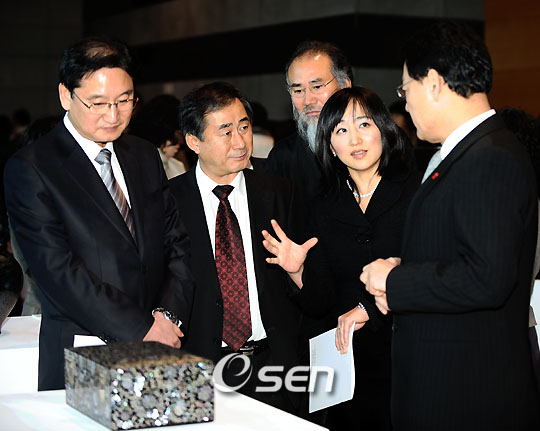 문화관광체육부가 주최하고 한국공예문화진흥원이 주관한 ‘백혈병 환우 돕기 한국공예품 자선공매’ 행사가 18일 오후 서울 용산구 서빙고로 국립중앙박물관 대강당에서 열렸다. 손지창의 사회로 진행된 이날 행사에는 유인촌 문화관광체육부 장관과 한국백혈병환우회 홍보대사로 활동하고 있는 서단비가 참석했고 주요 무형문화재 장인들이 직접 만든 작품 11점 등 44점의 작품들이 경매에 출품됐다. 유인촌 문화관광체육부 장관이 공예문화진흥원 조현주 부장으로부터 경매품에 대한 설명을 듣고 있다. /강희수 기자 100c@osen.co.kr 온라인으로 받아보는 스포츠 신문, 디지털 무가지 OSEN Fun&Fun, 매일 3판 발행