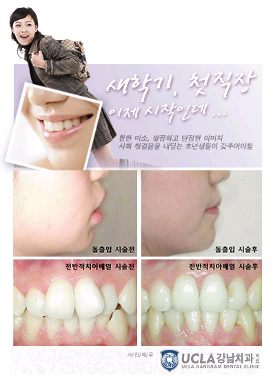 올해도 벌써 열흘 남짓밖에 남지 않았다. 많은 사람들은 새해가 되면 새로운 환경에서 많은 새로운 경험을 하게 될 것을 상상하여 기대감에 부풀기 마련이다. 시장경제가 유난히 어려웠던 올해이지만 이런 시기에 높은 취업의 벽을 넘어 취업에 성공한 예비사회인, 그 동안 진학을 위해 사당오락 열심히 공부한 결과 대학에 합격한 예비 대학생, 결혼을 앞둔 예비 신랑, 신부들에게는 다가오는 새해가 더욱 희망차다. 하지만 어렵게 취업, 대학진학, 결혼을 하게 되었지만 앞으로 다가올 일에 대한 부담도 적지 않다. 이미 합격의 영광을 얻은 이들은 다가오는 새해 2월~3월쯤에 출근 및 등교를 하게 되어 그 사이 2개월 이상의 공백기를 가지게 된다. 한 조사기관에서 예비인들을 대상으로 이 공백기에 무엇을 하는지 조사한 결과 많은 사람들이 자신이 가지고 있는 실력 또는 외모 등을 되돌아보고 새로운 환경에 적응을 위한 준비를 한다고 답했는데, 그 준비란 것이 바로 어학공부, 외모 가꾸기 등이었다고 한다. 높은 경쟁을 뚫고 원하는 곳에 소속되었지만 이러한 준비들이 그곳에서 살아남기 위한 노력의 한 부분이라고 여겨진다. 이 준비과정의 외모 가꾸기에는 피부관리, 성형, 다이어트 등이 포함되는데, 이미 취업을 위해 얼굴성형을 강행한 사람들이 많다고 하니 성형이 얼마나 대중화 되었는지 실감케 한다. 그러나 성형은 얼굴만을 위한 것은 아니다. 치아의 모양이 올바르지 않아 심미적인 문제로 사람과의 대화를 꺼린다거나 소극적인 인상을 주었다면 이제는 자신에게 맞는 치아성형을 통해 호감을 주고 스스로 자신감을 가질 수 있는 모습으로 변화해보는 것을 권하고 있다. 보통 치아가 가지런하지 않거나 교합이 반대인 부정교합일 때 또는 기타 정상적이지 않은 구조를 가진 경우에 이 교정을 위해서 치과를 찾게 된다. 여기서 교합이란 윗니와 아랫니의 맞물림 상태를 말하는데 치아가 삐뚤어져 있거나 턱의 위치가 비정상적인 위치에 있어 잘못 맞물려 있는 상태를 부정교합이라고 한다. 치아교정은 이런 부정교합을 훌륭한 치열과 아름다운 안모로 개선시켜 기능과 위치를 정상으로 회복시켜주는 예방 및 치료방법이라고 할 수 있다. 치아교정은 기능적인 문제를 해결해 줄 뿐만 아니라 자신감과 적극적이고 밝은 성격을 가지게 해준다. 덧니, 뻐드렁니, 입술의 돌출, 주걱턱 등과 같은 부정교합이 있는 경우 교정치료를 통해 가지런한 치열과 아름다운 미소로 사람들 앞에서 자신감 있는 모습을 보일 수 있기 때문이다. 특히 외모에 민감한 청소년이나 사회 생활을 하는 성인에게 이는 매우 중요한 문제일 수 있다. 또한 교정치료로 인해 얼굴의 모습도 바뀌게 된다. 수술을 동반한 치료를 받는 경우 긴 아래턱이나 무턱 등의 얼굴 모습을 고칠 수 있고, 수술을 동반하지 않는 경우라도 돌출된 입 등 전형적으로 동양적인 느낌을 주는 외모가 세련된 서구적인 안모로 바뀔 수 있다. 일반적으로 치아교정은 투명교정, 설측교정, 심미교정, 수술교정 등의 여러 방법으로 시행한다. 그러나 오랜 기간 시간을 투자하여 치아의 모양을 바꿀 수 없는 예비인의 경우라면 급속치아교정을 통해 치아의 모양의 변화를 꾀할 수 있다. 급속교정은 빠른 시간 안에 큰 효과를 볼 수 있기 때문에 바쁜 직장인들이 많이 찾는데 이러한 급속교정은 삐뚤삐뚤한 치아를 가지런하게 할 뿐만 아니라 동시에 색상도 하얗게 해 줄 수 있는 시술이라는 것이 장점이다. 하지만 교합이 맞지 않는 등의 골격의 문제라면 급속교정으로는 해결될 수 없고 일반교정이나 수술교정을 통해야 하기 때문에 시작하기 전에 반드시 심층상담이 필요하다. 이 급속치아교정에는 라미네이트(루미네이트,루미니어), 치아미백, 잇몸성형 등이 해당되는데, 급속교정, 치아성형이라고 말하는 라미네이트 시술은 앞니가 벌어지거나 치아크기가 작은 왜소치 의 경우, 앞니가 깨진 경우에 많이 시술하게 되는데 시술과 함께 하얀 치아를 가질 수 있는 장점을 가지고 있다. 또, 하얀 치아를 위한 치아미백, 라미네이트를 이용한 급속교정 외에 또 다른 치아성형으로 잇몸성형을 꼽을 수 있다. 잇몸성형은 높낮이가 일정하지 않아 울퉁불퉁한 잇몸라인을 갖고 있거나 비대칭적인 잇몸, 웃을 때 많이 드러나는 잇몸라인을 정돈하는 시술이다. 그러나 길지 않은 시간을 활용해야 하는 예비인들은 급한 마음에 자칫 잘못된 판단으로 적절한 의료기관 선정에 실패하는 경우가 종종 있다. 이에 UCLA강남치과 정해웅원장은 “ 치아교정은 치료과정이 전문화된 의료행위이므로 풍부한 임상경험을 갖고 있는 치과를 찾아야 하며, 진단과 치료계획 수립이 무엇보다도 중요하다.”라고 말하고 있다. 예비인들, 남은 시간 심적, 외적으로 잘 가꾸어 새로운 환경에 진출했을 때 성공할 수 있길 바란다. [OSEN=생활경제팀]osenstar@osen.co.kr UCLA강남치과(유씨엘에이강남치과) 제공 온라인으로 받아보는 스포츠 신문, 디지털 무가지 OSEN Fun&Fun, 매일 3판 발행