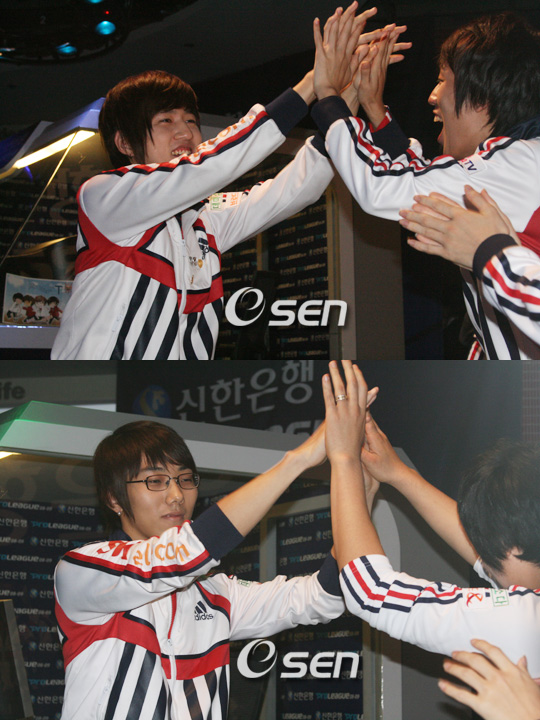 김택용(19)과 도재욱(19)이 건재를 과시한 SK텔레콤이 라이벌 삼성전자에 완승을 거두며 명실상부하게 최강의 프로토스 라인을 보여줬다. SK텔레콤은 20일 서울 문래동 룩스 히어로센터에서 열린 '프로리그 08-09시즌' 2라운드 4주차 삼성전자전서 정명훈-김택용-도재욱이 맹활약을 펼치며 3-1 승리를 거뒀다. 이날 승리로 SK텔레콤은 시즌 9승(8패 득실 0)째를 기록하며 6위로 올라서 상위권 도약을 발판을 마련했다. 반면 선두 자리에 있던 삼성전자는 시즌 6패(10승 득실 +9)째를 당하며 이날 용산 경기서 승리를 거둔 르까프에 선두 자리를 내주고 2위로 물러나고 말았다. 최근 한참 줏가를 올리고 있는 프로토스 6룡들 중 4명이 출격해 관심을 모았던 이날 경기서 주인공은 김택용과 도재욱이었다. 김택용은 맞수 송병구를 상대로 한 9번째 맞대결서 승리를 거두며 최고 프로토스 다운 면모를 과시했고, 도재욱은 이성은을 상대로 시원한 물량의 진수를 보여주며 팀 승리를 이끌었다. 또 테란 에이스인 정명훈도 육룡 중 한 명인 허영무를 상대로 물 샐틈없는 수비로 허영무를 무너뜨리며 제 몫을 단단히 했다. 삼성전자는 2세트 차명환이 박재혁을 잡아내며 영패를 면했지만 팀의 가장 주축선수인 송병구, 허영무, 이성은이 모두 패하며 완패의 수모를 당했다. ◆ 프로리그 08-09시즌 2라운드 4주차. ▲ 삼성전자 칸 1-3 SK텔레콤 T1. 1세트 허영무(프로토스, 1시) 정명훈(테란, 7시) 승. 2세트 차명환(저그, 3시) 승 박재혁(저그, 11시). 3세트 송병구(프로토스, 6시) 김택용(프로토스, 3시) 승. 4세트 이성은(테란, 5시) 도재욱(프로토스, 11시) 승. scrapper@osen.co.kr 온라인으로 받아보는 스포츠 신문, 디지털 무가지 OSEN Fun&Fun, 매일 3판 발행