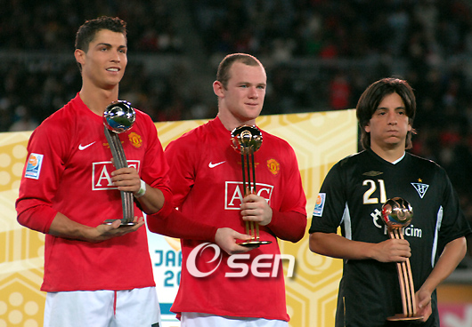 맨체스터 유나이티드의 FIFA 클럽 월드컵 우승을 이끈 웨인 루니가 대회 MVP로 선정돼 골든볼 트로피를 수상하며 세계 최고의 자리에 우뚝섰다. 맨체스터 유나이티드는 21일 일본 요코하마 닛산 스타디움에서 열린 2008 국제축구연맹(FIFA) 클럽 월드컵 결승전서 남 아메리카 대표로 출전한 리가 데 키토(에콰도르)를 1-0으로 꺾고 우승을 차지했다. 웨인 루니는 이날 경기 후반 27분 결승골을 터트리며 당당히 팀을 우승으로 이끌었다. 루니의 결승골로 맨체스터 유나이티드는 우승 상금 500만 달러를 거두어 들이는 부수입도 챙겼다. 지난 15일 일본에 입국한 맨체스터 유나이티드는 2경기서 완벽한 경기력을 선보이며 우승을 차지했다. 특히 루니는 준결승이었던 아시아 챔프 감바 오사카와 경기서 후반 교체 투입돼 팀의 낙승을 이끌었다. 루니는 17일 훈련 때 부상을 입어 출전이 불투명했다. 장시간의 비행으로 인한 피로 누적도 문제였다. 그러나 알렉스 퍼거슨 맨유 감독은 컨디션이 좋아 보이지 않았던 카를로스 테베스 대신 루니 카드를 빼내들지 않을 수 없었다. 맨체스터 유나이티드가 1차전서 2-1로 근소한 우위를 점하고 있을 때 후반 투입된 루니는 5분 만에 2골을 뽑아냈다. 특히 단 18분을 뛴 루니의 활약으로 맨체스터 유나이티드는 후반서만 3골을 뽑아내는 활약을 펼쳐 감바의 맹추격을 잠재울 수 있었다. 1차전이 끝난 후 퍼거슨 감독은 감독은 "경기 중간 긴장되는 순간이 없었던 것은 아니지만 3번째 골(루니)이 들어가면서 사실상 승부가 갈렸다"고 말했다. 결승전서 루니의 활약은 최고조에 달했다. 끝없는 공격을 통해 리가 데 키토를 몰아붙였지만 득점을 기록하지 못한 채 후반을 맞이한 맨체스터 유나이티드는 설상가상으로 후반서 네마냐 비디치가 퇴장을 당해 숫적인 열세를 가졌다. 하지만 루니는 2차전서 해결사 역할을 톡톡히 해냈다. 마이클 캐릭의 발에서 시작된 공격이 호나우두를 거치면서 왼쪽 측면에서 대기하던 루니가 강하게 걷어찬 공이 구석에 꽂힌 작품이었다. 결국 루니는 2경기서 3골을 몰아치며 2008 FIFA 클럽 월드컵 MVP로 인정을 받았다. 프리미어리그의 클럽 월드컵 첫 우승을 이끈 공로를 인정받은 그의 활약은 프리미어리그 3연패를 위해 계속될 전망이다. 10bird@osen.co.kr 골든볼을 수상한 루니가 실버볼의 크리스티아누 호나우두, 브론즈볼의 알레한드로 만소와 나란히 시상대에 서 있다. / 요코하마=송석린 객원기자song@osen.co.kr 온라인으로 받아보는 스포츠 신문, 디지털 무가지 OSEN Fun&Fun, 매일 3판 발행