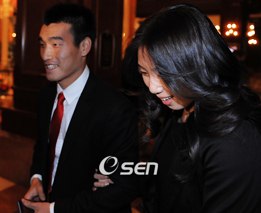 차범근 수원 삼성 감독의 아들 차두리(독일 분데스리가 2부 코블렌츠)가 22일 저녁 서울 임피리얼 팰리스 호텔서 신혜성 씨와 백년가약을 맺었다. 조원희가 이달 말 약혼할 심흥택 수영연맹회장의 차녀인 전 수영 국가대표 심민지와 팔짱을 끼고 로비로 들어서고 있다./민경훈 기자 rumi@osen.co.kr 온라인으로 받아보는 스포츠 신문, 디지털 무가지 OSEN Fun&Fun, 매일 3판 발행