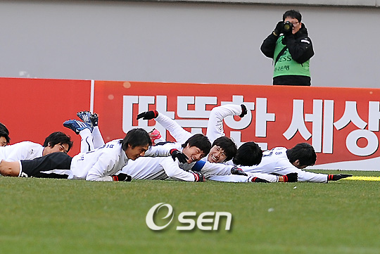 올해로 6회째를 맞는 홍명보 장학재단의 '하나은행과 함께 하는 SHARE THE DREAM FOOTBALL MATCH 2008'가 25일 오후 서울 상암월드컵경기장에서 열렸다. 사랑팀 이호가 골을 넣고 동료 선수들과 수영 세리머니를 선보이고 있다./상암=윤민호 기자ymh@osen.co.kr 온라인으로 받아보는 스포츠 신문, 디지털 무가지 OSEN Fun&Fun, 매일 3판 발행
