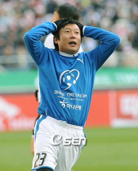 올해로 6회째를 맞는 홍명보 장학재단의 '하나은행과 함께 하는 SHARE THE DREAM FOOTBALL MATCH 2008'가 25일 오후 서울 상암월드컵경기장에서 열렸다. 전반 희망팀 이수근이 슈팅이 빗나가자 아쉬워하고 있다./상암=윤민호 기자ymh@osen.co.kr 온라인으로 받아보는 스포츠 신문, 디지털 무가지 OSEN Fun&Fun, 매일 3판 발행
