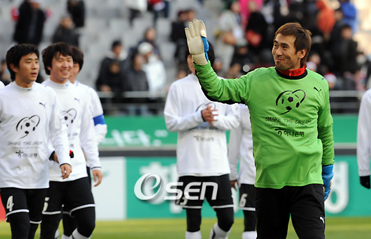 올해로 6회째를 맞는 홍명보 장학재단의 '하나은행과 함께 하는 SHARE THE DREAM FOOTBALL MATCH 2008'가 25일 오후 서울 상암월드컵경기장에서 열려 4-3으로 사랑팀이 승리를 거뒀다. 사랑팀 김병지가 관중석을 향해 손을 흔들며 인사를 하고 있다./상암=윤민호 기자ymh@osen.co.kr 온라인으로 받아보는 스포츠 신문, 디지털 무가지 OSEN Fun&Fun, 매일 3판 발행