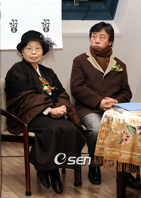 올 한해 연극계에서 가장 두드러진 성과를 보여준 배우를 선정, 시상하는 ‘제 13회 히서연극상’ 시상식이 26일 밤 서울 종로구 동숭동 일석기념관에서 열렸다. 메타와인파티 참여자들의 발의로 1996년 3월 제정된 이 상은 매년 11월 메타-다움와인파티경매를 통해 수상기금을 마련하고 시상식은 12월 메타-다움와인파티에서 진행된다. 연극 평론가 구히서 씨가 수상자 선정 전 과정을 책임지고 결정하는 상이기도 하다. 당해 연도에 제작된 연극작품과 연극인을 대상으로 하는 ‘2008년 히서연극상’은 두 명의 수상자를 배출하는데, ‘올해의 연극인상’에는 상금 250만 원과 상패, ‘기대되는 연극인상’에는 상금 150만 원과 상패를 수여한다. 평론가 구히서 씨와 ‘올해의 연극인상’ 수상자 신현종 씨가 나란히 앉아 시상식을 기다리고 있다. /100c@osen.co.kr