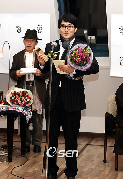 2008년 한해 한국연극계를 빛낸 배우를 선정하는 ‘제 13회 히서연극상’ 시상식이 26일 저녁 9시 서울 종로구 동숭동 일석기념관 6층에서 열렸다. 이날 시상식에서 ‘기대되는 연극인상’ 부문에서는 배우 김수현이 수상의 영광을 안았다. 13년을 이어 온 시상식인 만큼 전년도 수상자를 비롯해 많은 문화예술인들이 ‘메타와인파티(Metaa Wine Party)’에 참석해 성황을 이뤘다. 배우 김수현을 소개하고 축하하기 위해 마이크 앞에 선 극단 전망의 대표 심재찬은 “연출가가 배우를 볼 때, 저 배우가 어떤 좋은 조건을 갖고 어떤 좋은 배우가 될까 생각할 때가 많지만, 처음 보는 순간부터 끌려서 그 배우와 계속 작품을 하고 싶을 때가 있다”며 “그런 배우가 바로 김수현”이라고 말했다. 작품을 통해 배우 김수현을 알게 됐을 때, “저 배우가 누구냐”는 질문으로 배우를 찾았고 “하루도 쉬지 않고 연습을 하는 성실함”과 “뚝배기 같은 진국의 연기를 보여왔다”고 덧붙였다. 마지막으로 “배우로서 좋은 일들이 많았으면 한다”고 축사를 마무리 했다. 시상은 2000년 제 5회 ‘기대되는 연극인상’과 2004년 제 9회 ‘올해의 연극인상’을 받은 이상직이 맡았다. 이상직은 “기대되는 연극인상을 받을 때 어깨가 무거웠다”며 “이렇게 멋지고 매력이 넘치는 배우가 연기를 하는 것이 행복하다는 느낌을 받았다. 앞으로도 무대에서 더욱 빛을 발할 수 있었으면 한다”고 밝혔다. ‘기대되는 연극인상’을 수상한 배우 김수현은 “초등학교 개근상을 포함해 상을 처음 받는다”며 소탈한 웃음으로 수상소감을 밝혔다. 구히서 씨를 비롯해 선배 배우들과 동료들에게 인사를 전한 뒤 “상을 받으면 기분이 좋아지고 말이 술술 나올 것 같았는데, 막상 상을 받고 나니 오히려 말이 쉽게 나오지 않는다”며 쑥스러워했다. “기대에 어긋나지 않는 좋은 배우가 되도록 노력하겠다. 오늘의 영광을 아버지-어머니께 돌리겠다”고 수상소감을 마무리 했다. jin@osen.co.kr ‘기대되는 연극인상’을 받고 수상 소감을 말하고 있는 김수현. / 강희수 기자 100c@osen.co.kr
