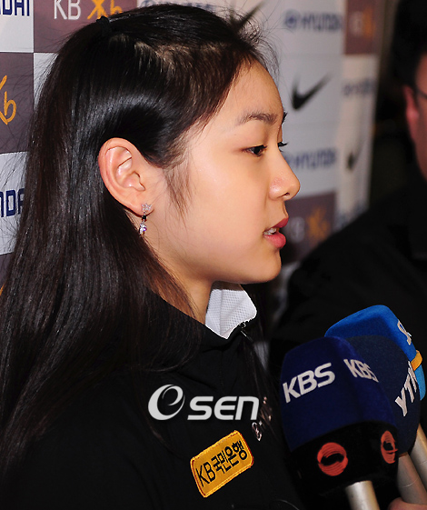 '피겨요정' 김연아(18, 군포 수리고)가 28일 인천공항을 통해 캐나다로 출국했다. 그랑프리 파이널에 출전해 아쉽게 2위를 차지했던 김연아는 20일간의 국내 체류를 마치고 캐나다로 출국, 2009국제빙상경기연맹(ISU) 4대륙 피겨스케이팅 선수권 대회(2009년 2월2~8일, 캐나다 밴쿠버)와 세계선수권대회(3월23~29일, 미국 LA)에 대비해 훈련한다. 김연아가 취재진과 출국 인터뷰를 하고 있다./인천공항=손용호 기자spjj@osen.co.kr