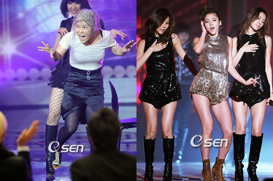 유쾌한 예능인들의 쇼가 화려했던 별들의 축제를 눌렀다. 시청률 조사회사인 AGB닐슨미디어리서치 조사결과 29일 방송된 MBC ‘방송연예대상’이 같은 시간 방송된 SBS ‘가요대전’을 누르고 동시간대 시청률 1위를 차지했다. MBC ‘방송연예대상’ 1,2부는 각각 21.1%, 20.6%의 전국 시청률을 기록했다. 이날 방송은 MBC 노조 파업으로 일부 제작진이 불참해 완성도를 살리기엔 역부족이었다. 게다가 같은 시간 SBS ‘가요대전’이 생방송으로 진행되고 있어 특급 게스트를 초청하지도 못했다. 하지만 예능인들의 깜짝 변신으로 시청자들의 이목을 끌기엔 충분했다. 손담비로 변한 조혜련이 끝내 골룸으로 탈바꿈하고, ‘라디오 스타’의 라브라더스, 김국진, 김구라, 윤종신, 신정환이 빅뱅으로 분해 ‘거짓말’을 소화하는 모습도 볼만했다. 이날 단독 MC로서 매끄러운 진행을 선보인 이혁재는 비의 ‘레이니즘’과 ‘베토벤 바이러스’를 패러디해 웃음을 선사했다. '우리 결혼했어요'의 대표 커플들이 선보인 감미로운 무대도 눈길을 끌었다. 결국 강호동이 KBS 연예대상에 이어 2관왕을 차지했지만 2008년 연예대상 최대 접전지답게 강호동과 유재석, 끝까지 누가 대상을 탈지 예측하기 힘들었던 만큼 시청자들의 관심이 더욱 쏠렸다. 한편 SBS ‘가요대전’은 16.4%의 시청률을 기록했다. MBC ‘방송연예대상’에는 못 미치는 수치지만 서태지, 보아 등 대한민국 별들이 총집합해 화려한 볼거리를 제공했다. ‘S’로 시작하는 키워드 ‘슈퍼루키’ ‘섹시’ ‘스탠드업’ ‘서프라이즈’ ‘센세이션’ ‘서태지’ ‘쇼킹’ 등을 뜻하는 가수들이 등장했다. 2PM, 2AM, 샤이니를 시작으로 다비치, 원더걸스, 소녀시대, 쥬얼리, 브라운 아이드 걸스, 카라, 은지원, 다이나믹 듀오, 빅뱅, 김종국, 슈퍼주니어, SG워너비 등 톱스타들이 모두 출연해 팬들을 열광시켰다. 또 송대관, 태진아, 장윤정, 박현빈 등 대표 성인가요 4인방이 함께 했다. 건강상의 이유로 이효리의 출연은 불발됐지만 비의 ‘비’ 퍼포먼스와 동방신기, 1년 6개월 만에 국내 무대에 선 보아 등이 아쉬움을 대신했다. 이날 MC 박예진, 이천희, 대성 등은 기대에 못 미치는 진행으로 아쉬움이 컸지만 흥겨운 축제의 장으로 팬들과 시청자들이 열광하기 충분했다. miru@osen.co.kr