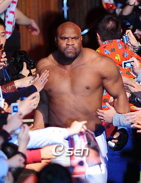 '야수' 밥 샙(34)이 파이터의 자존심을 지켰다. 밥 샙은 31일 일본 사이타마 슈퍼아레나에서 열린 'K-1 다이너마이트 2008'에서 '만화 캐릭터'로 나선 긴니쿠 만타로(근육맨)를 상대로 1라운드 5분 22초만에 TKO승을 거뒀다. 이날 만타로와 대결은 종합격투기라기 보다는 엔터테인먼트 요소의 느낌이 강한 만큼 샙에게 반드시 이겨야 하는 경기였다. 그리고 샙은 초반 열세를 만회하고 타격 기술을 발휘해 1년 만에 종합격투기 승리의 기쁨을 누렸다. 샙은 지난해 12월 31일 바비 올로건에 승리한 후 잇달은 패배로 체면을 구겨왔다. 이날 승리도 결코 쉬운 것은 아니었다. 종합격투기 전적이 없는 초보 파이터를 상대했지만 가면 안에 숨어있는 실력은 결코 만만치 않았던 것. 일본 레슬링에서 7연승을 거둔 경력을 자랑하는 만타로는 초반 샙을 넘어뜨린 후 파운딩 공격을 퍼부으면서 샙을 당혹케 만들었다. 그러나 만타로의 경험 부족이 문제였다. 일방적인 흐름을 잡았음에도 불구하고 경기를 끝내지 못한 만타로는 샙의 강력한 펀치와 니킥에 무너졌다. 기회를 잡은 샙은 매서운 펀치로 승부를 끝냈다. 샙은 상대를 코너에 몰아넣은 뒤 지속적인 공격을 펼쳐 주심이 경기를 끝내도록 만들었다. stylelomo@osen.co.kr