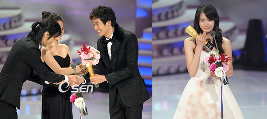 정겨운과 윤아가 생애 한번 뿐인 신인상을 차지했다. 정겨운과 윤아는 31일 오후 9시 55분부터 서울 여의도 KBS홀에서 생방송으로 진행된 ‘2008 KBS 연기대상’에서 신인상을 수상하는 영광을 누렸다. ‘태양의 여자’ 정겨운은 “연기를 시작한 지 4년 만에 받는 상이다. 여러 모로 뜻 깊고 은근히 기대했는데 정말 받았다. 부족한 저를 믿어주시고 써주신 ‘태양의 여자’ 제작진에 감사드린다. 더욱더 믿음가는 배우가 되도록 노력하겠다”고 감격적인 수상 소감을 남겼다. 윤아는 ‘너는 내 운명’으로 가수 뿐만 아니라 연기자로서도 인정받는 계기가 됐다. 눈물로 범벅이 된 윤아는 “많은 선배님과 선생님, 특히 엄마였던 정애리 선생님 연기 지도해줘서 감사드린다. 고생한 제작진과 매니저 오빠들, 누구보다 가족과 팬들에게 감사의 말을 전하고 싶다”고 소감을 남겼다. 이날 남자 신인상에는 ‘엄마가 뿔났다’ 기태영, ‘너는 내 운명’ 박재정, ‘대왕세종’ 이천희, ‘태양의 여자’ 정겨운이 후보에 올라 경합을 벌였으며 여자 신인상은 ‘그들이 사는 세상’ 서효림, ‘대왕세종’ ‘돌아온 뚝배기’ 오연서, ‘너는 내 운명’ 윤아, ‘내사랑 금지옥엽’ 홍아름 등이 경쟁했다. miru@osen.co.kr 민경훈 기자 rumi@osen.co.kr