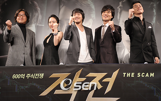 주식을 소재로 한 영화 '작전'의 제작보고회가 6일 서울 장충동 소피텔 앰배서더 호텔에서 열렸다. 이 영화는 인생의 한방을 위해 주식에 뛰어든 한 평범한 남자가 작전세력에 엮여 모든 것을 건 승부를 펼치는 내용으로 오는 2월 12일 개봉예정이다. 이 자리에는 이호재 감독과 주연배우 박용하 김민정 박희순 김무열이 참석했고 기자회견 후 단체 포토타임을 갖고 있다./민경훈 기자 rumi@osen.co.kr