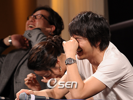 주식을 소재로 한 영화 '작전'의 제작보고회가 6일 서울 장충동 소피텔 앰배서더 호텔에서 열렸다. 이 자리에는 이호재 감독과 주연배우 박용하 김민정 박희순 김무열이 참석했다. 이 영화는 인생의 한방을 위해 주식에 뛰어든 한 평범한 남자가 작전세력에 엮여 모든 것을 건 승부를 펼치는 내용으로 오는 2월 12일 개봉예정이다. 기자회견 중 박용하 김민정 이호재 감독이 박장대소하고 있다. /민경훈 기자 rumi@osen.co.kr