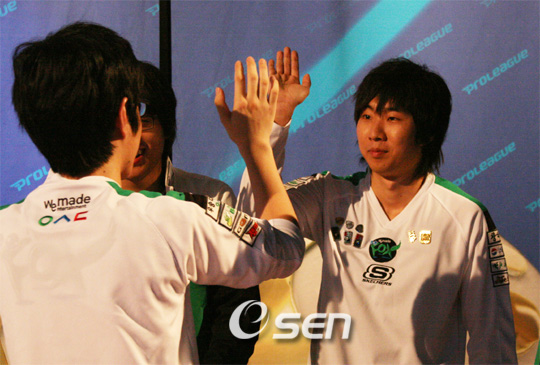 최근 3연패로 부진의 늪에 허덕이던 위메이드가 최강팀으로 꼽히는 삼성전자를 잡고 재도약의 불을 지폈다. 팀의 최고참 이윤열은 송병구라는 대어 사냥에 성공하며 프로리그 통산 91승째를 올리며 역대 다승 부문 단독 선두로 올라섰다. 위메이드는 6일 서울 문래동 룩스 히어로센터에서 열린 프로리그 08-09시즌 2라운드 삼성전자와의 경기서 맏형 이윤열이 두 달만에 1승을 추가하는 활약과 이영한 박성균이 바통을 이어받는데 힘입어 301로 승리를 거뒀다. 이날 승리로 시즌 9승째를 올린 위메이드는 3연패 탈출과 동시에 삼성전자의 5연승을 저지했다. 연패 탈출의 시작은 이윤열로부터 시작됐다. 이날 경기서 선봉으로 출전한 이윤열은 과거 프로토스전 대가로 불리던 '머신'으로 돌아가 송병구를 제압했다. 본진 플레이로 출발한 그는 송병구가 과감하게 트리플 넥서스를 시도하자 공격을 개시, 송병구의 진출 자체를 원천적으로 봉쇄하며 선취점을 올렸다. 이어 이영한이 삼성전자가 자랑하는 또 하나의 에이스 허영무를 격파하는 개가를 올렸다. 빠른 3해처리 체제를 구축한 이영한은 다수의 저글링을 앞세워 허영무의 본진과 앞마당을 쓸어버리며 추가점을 올렸다. 안기효가 제 컨디션을 보이지고 못하고 한 점 내줬지만 위메이드 부동의 에이스 박성균이 건재했다. 최고의 주가를 올리고 있는 테란답게 박성균은 실수를 찾을 수 없는 무결점 경기로 이성은을 제압하고 팀 승리를 확정지었다. 5연승과 함께 선두 탈환을 노리던 삼성전자는 팀의 주포인 송병구 허영무 이성은이 모두 무너지며 시즌 7패(14승)째를 당했다. 이날 주영달은 시즌 2승째를 올렸지만 팀의 패배로 빛을 잃었다. ◆ 프로리그 08-09시즌 2라운드 5주차. 위메이드 폭스 3-1 삼성전자 칸. 1세트 이윤열(테란, 7시) 승 송병구(프로토스, 11시). 2세트 이영한(저그, 5시) 승 허영무(프로토스, 7시) 3세트 안기효(프로토스, 6시) 주영달(저그, 3시) 승. 4세트 박성균(테란, 1시) 승 이성은(테란, 7시). scrapper@osen.co.kr. . . . . . .