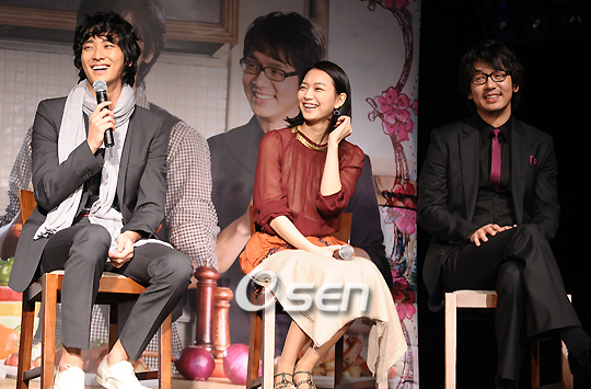 로맨스 영화 '키친'의 제작보고회가 7일 서울 압구정 예홀에서 열렸다. 이 자리에는 홍지영 감독과 주연배우 주지훈 신민아 김태우가 참석했다. 이 영화는 두 남자와의 사랑을 특별한 장소에서 공유하게 되는 한 여자의 비밀스런 사랑이야기로 오는 2월 5일 개봉 예정이다. 기자회견 중 주지훈 신민아 김태우가 환하게 웃고 있다. /민경훈 기자 rumi@osen.co.kr