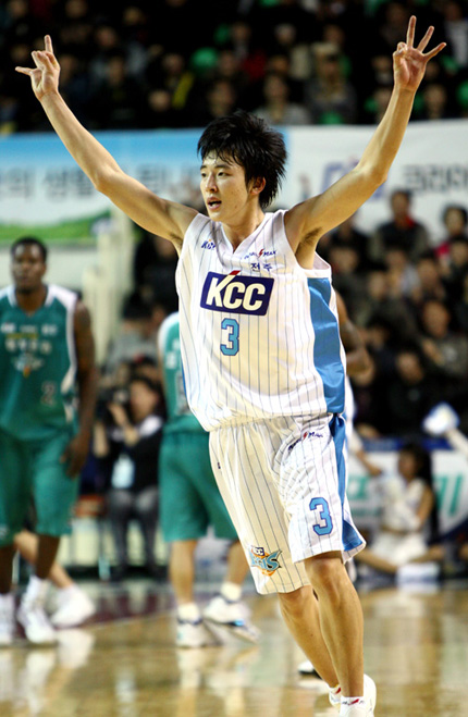 "자신감 있게 외곽슛 던질 수 있도록 노력하겠다". 전주 KCC가 전주실내체육관에서 열린 2008~2009 프로농구 서울 SK와 경기서 종료 직전 터진 강병현의 역전골에 힘입어 75-74로 승리하며 경기장을 찾은 홈팬들을 열광의 도가니로 빠트렸다. 이날 승리로 KCC는 3연승에 성공하며 공동 6위에 올랐다. 경기 종료 12초 전 결승골을 성공시킨 강병현은 침착하게 인터뷰를 가졌다. 강병현은 "마지막 속공이 절대로 실패할 것이라고 생각하지 않았다"면서 "SK 수비가 한쪽으로 몰려 그대로 치고 들어간 것이 승리를 거두게 됐다"고 소감을 밝혔다. 이어 그는 "팀은 승리를 거두었지만 개인적인 경기 내용은 만족하지 않는다"면서 "턴오버가 너무 많았고 외곽포가 터지지 않았기 때문에 부족한 점이 많다"고 전했다. 이날 강병현은 14점 5리바운드를 기록했다. 특히 4쿼터서 7점을 뽑아내며 KCC 승리의 견인차 역할을 했다. 하지만 강병현은 3점슛을 6개 시도해 1개밖에 적중시키지 못해 부진한 외곽포에 대해 자책했다. 강병현은 "우리 팀은 많이 앞서 나갈 때 단발성 공격이 많은 것 같다"며 "꾸준하게 상대를 압도할 수 있는 공격이 필요하다"고 말했다. 또 강병현은 "파울도 많고 실책도 많다"며 "자신감 있게 외곽슛을 던질 수 있도록 더 노력하겠다"고 다짐했다. 10bird@osen.co.kr 전주 KCC 제공.