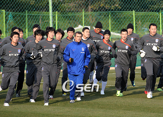 "생각만큼 시간이 길지 않다. 주어진 시간을 최대한 활용하겠다". 축구 국가대표팀이 11일 오전 제주 서귀포시 토평동 서귀포 시민구장에서 오는 2월 11일 이란과의 2010 남아공 월드컵 아시아지역 최종 예선 4차전에 대비한 첫 훈련을 시작했다. 본선 진출의 마지막 고비라고 할 수 있는 이란전을 대비해 제주도에서 전지훈련을 시작한 허정무 감독은 이날 겨우내 굳어있던 선수들의 몸 상태를 체크하는 데 주력했다. 이날 대표팀은 갑작스런 추위와 강풍에도 불구하고 스트레칭과 러닝으로 워밍업에 들어가 20여 분간 감각을 찾기 위해 땀을 흘렸다. 이후 대표팀은 가벼운 패스 훈련에 돌입했다. 그러나 허정무 감독은 패스 훈련에도 까다로운 볼 터치로 선수들을 당혹케 했다. 허정무 감독은 "집중하라. 볼을 끌지 말고 바로 처리해라"고 외치며 분발을 독려하기도 했다. 그러나 첫 훈련인 만큼 마지막은 활발한 분위기에서 진행됐다. 프리킥으로 크로스바를 맞히는 것으로 훈련을 끝낸 대표팀은 자발적인 경쟁 구도가 엿보이기도 했다. 특히 치열한 주전 경쟁을 펼치고 있는 스트라이커들은 조금이라도 허정무 감독의 눈에 들기 위해 최선을 다했으나 이근호는 끝내 크로스바를 맞히지 못하면서 멋쩍은 미소를 지어야 했다. 훈련이 끝난 뒤 허정무 감독은 "한 달간 훈련을 한다고 하지만 생각만큼 시간이 길지 않다. 설을 끼고 있을 뿐만 아니라 선수들에게 휴식 시간도 줘야 한다. 주어진 시간을 최대한 활용하겠다"는 각오를 전했다. 한편 대표팀은 12일 한라산을 등반한 뒤 고양 KB국민은행(15~16일)와 숭실대(19일) 그리고 울산 현대(21일, 23일) 등을 상대로 연습경기를 치르며 본격적인 담금질에 들어갈 전망이다. stylelomo@osen.co.kr 서귀포=민경훈 기자 miru@osen.co.kr