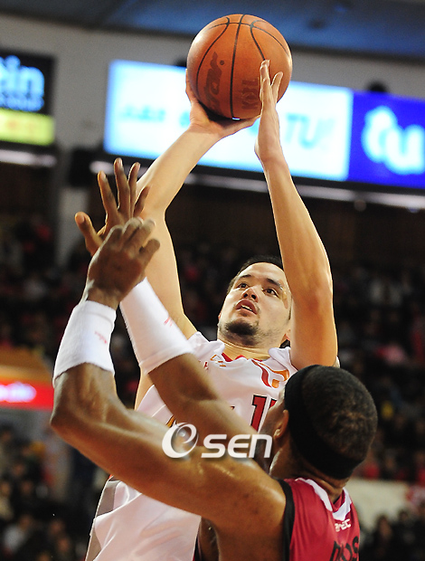 "김민수가 부족했던 부분을 채워가고 있다". 서울 SK는 11일 서울 잠실학생체육관에서 열린 2008~2009 프로농구 창원 LG와 경기서 '더블-더블'을 기록한 김태술(11점, 11어시스트)과 테런스 섀넌(26점, 7리바운드)의 활약에 힘입어 71-67로 역전승했다. 이날 승리로 SK는 12승 18패를 기록, 4할 승률에 도달했다. 김진 SK 감독은 수비로 LG의 공격을 막아내며 승리를 거둔 것에 대해 크게 기뻐했다. 김진 감독은 "경기 막판 수비를 통해 상대의 공격을 잘 막아낸 것이 좋은 결과를 얻었다"면서 "식스맨들이 코트 위에 나서 득점을 올려준 것이 큰 도움이 됐다"고 소감을 밝혔다. 이어 김 감독은 "전반까지 외국인 선수들이 해준 것이 거의 없었다"며 "그러나 김민수가 자기 몫을 넘는 플레이를 보였고 외곽포도 순조로웠던 것이 경기를 잘 풀어갈 수 있었다"고 전했다. 지난 KCC와 경기서 막판 집중력이 흔들리며 승리를 내주었던 SK는 단독 3위를 노리던 LG를 잡고 오리온스를 맹추격했다. 김진 감독은 "LG의 가드라인이 강해 김태술 대신 박성운을 내세웠다"며 "김민수가 부족했던 부분을 채워가고 있다. 특히 골밑 플레이와 함께 외곽으로 찬스를 만들어주며 자신감까지 회복해 큰 도움이 된다"고 말했다. 한편 LG 강을준 감독은 "이겨야 할 팀에 쉽게 이기지 못한다"며 "10점차 앞섰을 때 집중력이 흔들리며 추격을 허용한 것이 패배의 원인이다"고 대답했다. 10bird@osen.co.kr 2쿼터 SK 김민수가 LG 크럼프를 앞에 놓고 미들슛을 시도하고 있다./잠실학생체=손용호 기자spjj@osen.co.kr