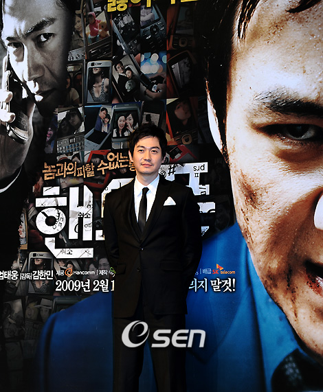 박용우,엄태웅이 주연하는 영화 '핸드폰'(김한민 감독) 제작보고회가 12일 시청앞 프라자 호텔 다이아몬드 홀에서 열렸다. 실제 경험을 모티브로 출발한 작품은 4년 동안의 치밀한 시나리오 작업을 바탕으로 핸드폰 분실 후 지옥 같은 128시간을 껵게 되는 한남자의 이야기를 담은 스릴러 이다. 박용우가 취재진을 향해 포즈를 취하고 있다./김영민 기자ajyoung@osen.co.kr
