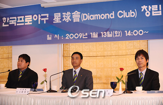 한국프로야구 성구회(Diamond Club) 창립 기자회견이 송진우,양준혁,전준호가 참석한가운데 13일 오후 태평로 한국프레스센터 외신기자클럽에서 열렸다. 투타에서 기념비적인 기록을 남긴 선수들만 가입하는 단체로 투수는 200승,300세이브 달성과 타자는 2000안타를 달성한 선수만이 가입할수 있는 프로야구 최고의 영예로은 모임이다./김영민 기자ajyoung@osen.co.kr