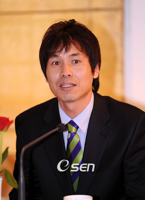 한국프로야구 성구회(Diamond Club) 창립 기자회견이 송진우,양준혁,전준호가 참석한가운데 13일 오후 태평로 한국프레스센터 외신기자클럽에서 열렸다. 투타에서 기념비적인 기록을 남긴 선수들만 가입하는 단체로 투수는 200승,300세이브 달성과 타자는 2000안타를 달성한 선수만이 가입할수 있는 프로야구 최고의 영예로은 모임이다. 히어로즈 전준호가 후배들에게 도전하는 기록 정신과 아마추어 야구 육성에 많은 도움이 되었으면 한다며 답변을 하고 있다./김영민 기자ajyoung@osen.co.kr