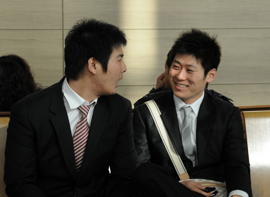 "공항으로 나와 달라고 했었죠. 안 나오면 혼난다고 엄포도 놨구요.(웃음)" '손시헌(29)-이종욱(29)' 라인에 이어 이번에는 이들이 '절친 효과'를 내뿜을 것 인가. 두산 베어스 마운드의 '왕자' 김명제(22)와 새롭게 가세한 내야수 이원석(23)이 돈독한 우정을 과시하며 2009시즌을 바라보고 있다. 지난해 12월 프리에이전트(FA)로 이적한 홍성흔(32)의 보상 선수로 두산에 이적한 이원석은 이적 첫 날 전화 통화에서 "올림픽 대표팀 상비군 시절 동료 등 두산에 친한 선수들이 많은 편이다. 특히 (김)명제는 전날 김포 공항으로 올라올 때 안내해주러 직접 오기도 했다"라며 친분을 과시했다. 김명제와 이원석은 고교 시절 청소년 대표팀서 한솥밥을 먹은 바 있다. '굉장히 친한가 보다'라며 묻자 이원석은 "제가 공항으로 나와달라고 했어요. '안 나오면 혼날 줄 알아라'라고 했습니다"라며 장난스럽게 웃어 보였다. 지난 6일 용품 지급을 위해 두산 구단 라커룸에서 만난 이원석과 김명제는 은근히 장난스러운 표정을 지으며 우정을 과시했고 15일 전지훈련 출국장에서도 함께 있었다. 김명제와 이원석은 2009시즌 두산의 전력 상승의 '핵심 키워드'와도 같은 선수들인 만큼 더욱 팬들의 관심을 모으고 있다. 지난해 7승 3패 평균 자책점 3.81을 기록했으나 후반기 부상으로 인해 아쉬운 한 해를 보낸 김명제는 "지난해에는 너무나 아쉬웠다. 그동안 힘으로 밀어 붙이는 투구를 했는데 이제는 변화구를 새로 연마하며 더 많은 이닝을 소화하고 싶다"라고 이야기했다. 지난 시즌까지 두산의 외국인 선수가 선발 요원 2명으로 구성된 데 반해 올시즌에는 팀 내 외국인 투수가 '터줏대감' 맷 랜들(32) 밖에 없다. 그만큼 2009시즌 두산 선발진에서 김명제의 비중이 커진 것을 알 수 있다. 그동안 경기 당 이닝 소화 능력과 기복이 심하다는 아쉬움을 비췄던 김명제가 약점으로 평가되었던 '밀어 던지는 투구'를 극복할 수 있을 지 궁금해진다. 2005년 롯데 입단 이후 잠재력 면에서 높은 평가를 받았으나 확실한 두각을 나타내지는 못했던 이원석의 활약 여부도 궁금해진다. 두산이 홍성흔의 보상 선수로 이원석을 지명하면서 야구 팬들 사이에는 트레이드 루머가 떠돌기도 했으나 이는 시기상조다. 김경문 감독이 "전지 훈련 과정을 면밀히 지켜본 뒤 트레이드 카드를 결정할 것이다"라고 밝혔기 때문이다. 어려운 타구에 호수비를 펼치는 동시에 공을 갖다 맞추는 자질 면에서 현장의 높은 평가를 받았던 이원석은 광주 동성고 시절 말엽부터 수비 집중력에서 다소 아쉬운 모습을 보인 바 있다. 롯데 입단 이후에는 조금씩 발전하며 가능성을 비추기도 했으나 외야 좌중간으로 향하는 타구나 2루 베이스를 타고 날아가는 공을 잘 처리한 데 반해 야수 정면으로 바운드되는 타구를 잡는 데는 어려움을 겪은 바 있다. 그러나 1루를 제외한 내야 전 포지션을 소화할 수 있다는 점은 이원석의 커다란 장점이다. 김 감독은 "외부에서 확실한 주전으로 평가하는 2루수 고영민(25)이 부상을 당하지 않을 것이라는 보장이 없다. 때문에 섣불리 필수 자원을 트레이드 할 수 없다"라고 이야기했다. 어려운 역동작이나 피봇 플레이가 가능한 김재호(24), 이원석을 2루 요원으로 쓸 수도 있다는 일종의 복선과 같다. 김명제와 이원석은 각각 투수진과 내야진을 더욱 튼실하게 해 줄 입단 동기생들이다. 돈독한 우정을 과시하고 있는 그들이 두산 전력의 극대화를 안겨줄 수 있을 지 팬들의 기대가 커지고 있다. farinelli@osen.co.kr 김명제-이원석/두산 베어스 제공.