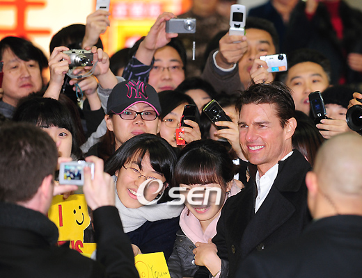 할리우드 톱 스타 톰 크루즈(46)가 16일 전세기를 타고 김포공항으로 낮 12시경 입국했다. 톰 크루즈는 영화 ‘작전명 발키리’의 개봉을 앞두고 영화 홍보차 방한했다. 톰 크루즈는 17일에는 서울 용산 CGV에서 브라이언 싱어 감독과 함께 핸드프린트 행사에 참석한다. 18일에는 그랜드 하얏트호텔에서 내한 기자회견을 갖은 이후에 삼성동 코엑스 메가박스에서 레드카펫 행사를 가지며 바쁜 홍보 일정을 소화할 예정이다.톰 크루즈는 1월 22일 국내 개봉을 확정 지은 영화 ‘작전명 발키리’의 주연을 맡았다. 이 영화는 2차 세계대전 당시 히틀러 암살 계획을 주도했던 이들의 실화를 바탕으로 탄생한 액션 스릴러 물이다. 톰 크루즈는 조국을 위해 버렸던 양심을 되찾고 역사의 흐름을 되돌리기 위해 죽음도 두려워하지 않는 독일 장교 슈타펜버그 대령 역을 맡았다. 톰 크루즈가 밝은 모습으로 팬과 기념사진을 찍고 있다./손용호 기자spjj@osen.co.kr
