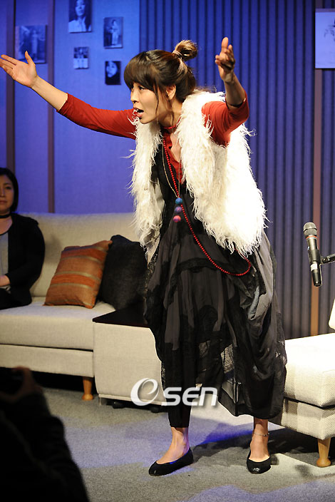 여자들이 펼치는 여성들의 성 이야기, 연극 ‘버자이너 모놀로그’의 프레스콜이 16일 오후 서울 대학로 SM스타홀에서 열렸다. ‘여자 성기의 조용한 외침’으로 수식되는 ‘버자이너 모놀로그’는 이경미 전수경 최정원 등 세 배우가 트라이로그 형식으로 엮어 16일부터 2월 28일까지 공연한다. 최정원이 하이라이트 장면을 연기하고 있다. /강희수 기자 100c@osen.co.kr