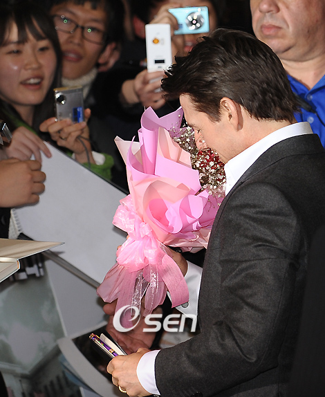영화 ‘작전명 발키리’의 개봉을 앞두고 영화 홍보차 방한한 할리우드 톱 스타 톰 크루즈(46)와 브라이언 싱어 감독(42)이 함께 17일 저녁 서울 용산 CGV에서 핸드프린트 행사에 참석했다. 톰 크루즈는 1월 22일 국내 개봉을 확정 지은 영화 ‘작전명 발키리’의 주연을 맡았다. 이 영화는 2차 세계대전 당시 히틀러 암살 계획을 주도했던 이들의 실화를 바탕으로 탄생한 액션 스릴러 물이다. 톰 크루즈는 조국을 위해 버렸던 양심을 되찾고 역사의 흐름을 되돌리기 위해 죽음도 두려워하지 않는 독일 장교 슈타펜버그 대령 역을 맡았다. 톰 크루즈가 팬이 건넨 꽃다발의 향기를 맡고 있다. /민경훈 기자rumi@osen.co.kr