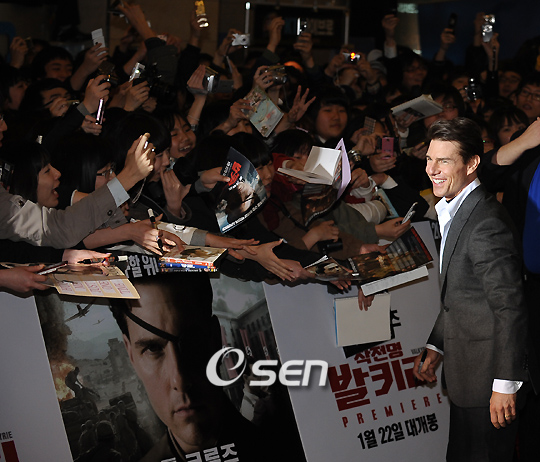 영화 ‘작전명 발키리’의 개봉을 앞두고 영화 홍보차 방한한 할리우드 톱 스타 톰 크루즈(46)와 브라이언 싱어 감독(42)이 함께 17일 저녁 서울 용산 CGV에서 핸드프린트 행사에 참석했다. 톰 크루즈는 1월 22일 국내 개봉을 확정 지은 영화 ‘작전명 발키리’의 주연을 맡았다. 이 영화는 2차 세계대전 당시 히틀러 암살 계획을 주도했던 이들의 실화를 바탕으로 탄생한 액션 스릴러 물이다. 톰 크루즈는 조국을 위해 버렸던 양심을 되찾고 역사의 흐름을 되돌리기 위해 죽음도 두려워하지 않는 독일 장교 슈타펜버그 대령 역을 맡았다. 톰 크루즈가 팬들의 환호에 미소로 답하고 있다. /민경훈 기자rumi@osen.co.kr