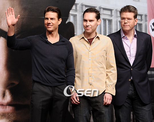 영화 ‘작전명 발키리’의 개봉을 앞두고 영화 홍보차 방한한 할리우드 톱 스타 톰 크루즈(46)가 브라이언 싱어 감독과 크리스토퍼 맥쿼리 작가와 함께 18일 그랜드 하얏트 서울 브랜드볼룸에서 기자회견에 참석했다. 톰 크루즈는 1월 22일 국내 개봉을 확정 지은 영화 ‘작전명 발키리’의 주연을 맡았다. 이 영화는 2차 세계대전 당시 히틀러 암살 계획을 주도했던 이들의 실화를 바탕으로 탄생한 액션 스릴러 물이다. 톰 크루즈는 조국을 위해 버렸던 양심을 되찾고 역사의 흐름을 되돌리기 위해 죽음도 두려워하지 않는 독일 장교 슈타펜버그 대령 역을 맡았다. 단체 포토타임을 갖던 중 톰 크루즈가 손을 흔들고 있다./민경훈 기자rumi@osen.co.kr