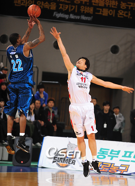 '2008-2009 동부 프로미 프로농구'인천 전자랜드와 전주 KCC의 경기가 18일 인천 삼산실내체육관에서 벌어졌다. 두 팀은 지난 12월 19일 전자랜드는 강병현, 정선규, 조우현을 내준 대신 서장훈과 김태환을 받는 대형 트레이드를 단행했다. 1쿼터 전자랜드 서장훈이 KCC 미첼의 3점슛을 블로킹하기 위해 날아오르고 있다./삼산체=손용호 기자spjj@osen.co.kr